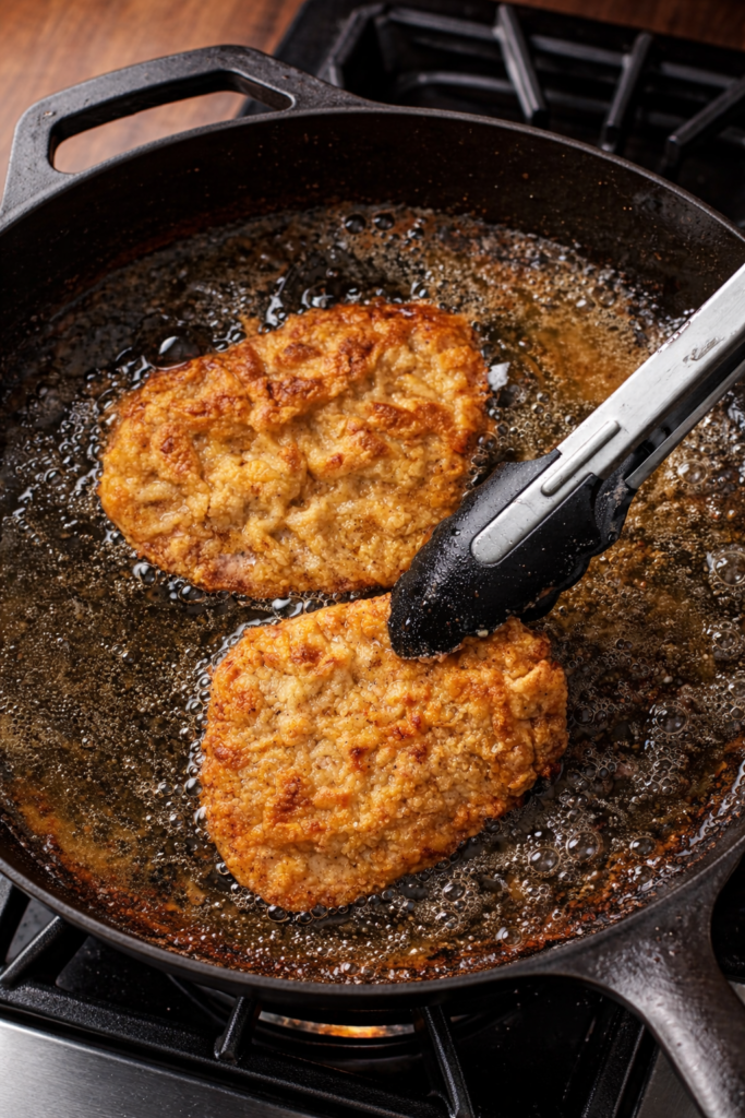 - Coating falling off: Let the dredged steaks rest briefly before frying, and avoid flipping too often. One flip is enough.