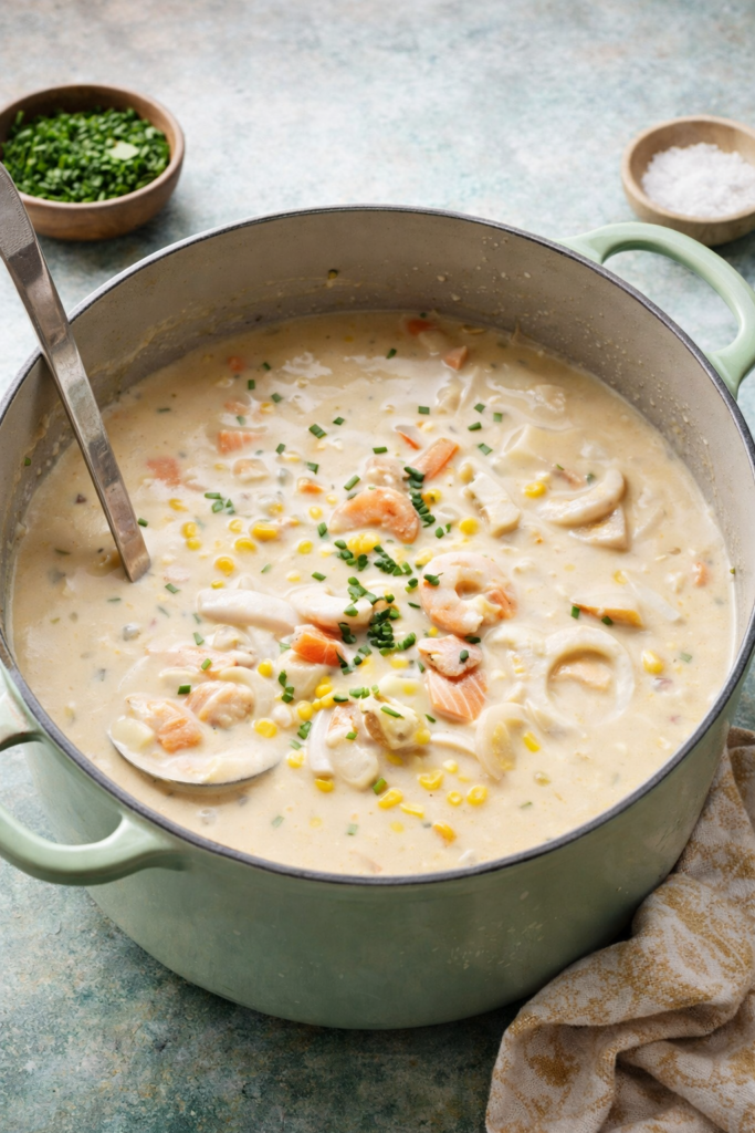 • Coconut Seafood Chowder: Replace cream with coconut milk, add lime juice, ginger, and cilantro for a bright, dairy-free version.